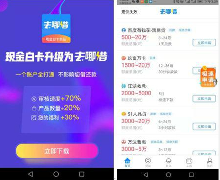 图片来源:现金白卡官微及去哪借首页