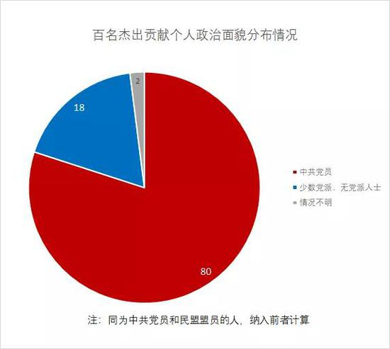 一百人当中,除去香港实业家王宽诚和小岗村“大包干”带头人不明确外,其余98人,中共党员80人,少数党、无党派人士18人。可见在决策层眼里中,党员是过去四十年来最为中坚的力量。