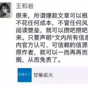 1月11日,前媒体人黄志杰在公号“呦呦鹿鸣”中发表了一篇通过官员落马事件展现媒体与甘肃武威地方官场的角力。这篇获得3.9万点赞的文章,遭到了财新记者王和岩的抵制。原来《甘柴劣火》中组织文章的事实材料,大量取自公开报道,其中便有王和岩采写的报道。虽然《甘柴劣火》在文章中都注明了出处,但这在王和岩看来并不能为其免责——