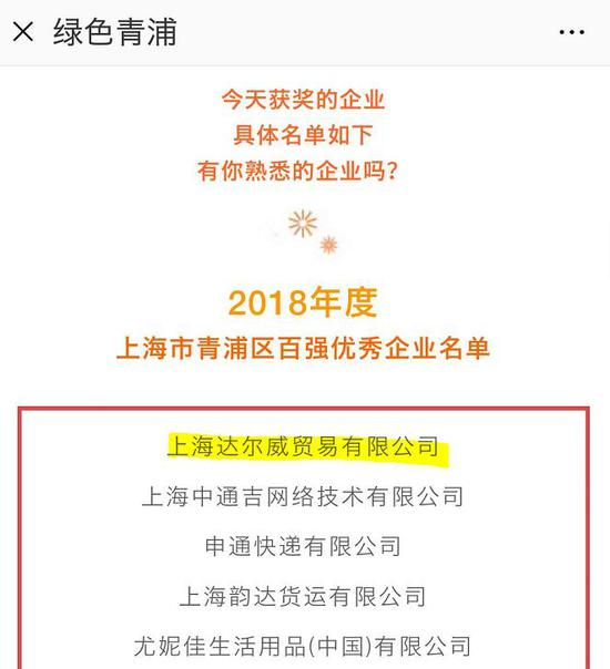 青浦区人民政府新闻办公室向每日经济新闻(微信号:nbdnews)记者确认称,上海达尔威获得青浦区最高纳税奖,但具体纳税金额还有待确认。