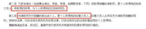 换句话说,在演艺行业,无论海外、港澳台还是大陆艺人,均需依法缴纳个税。这里,演出艺人所得属于劳务报酬所得,适用劳务报酬所得税。