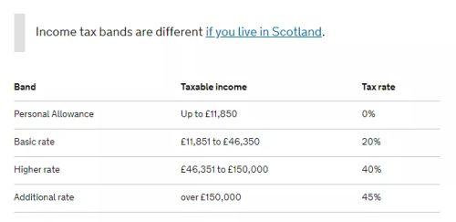 英国个税累进税率表(注:苏格兰地区另计)