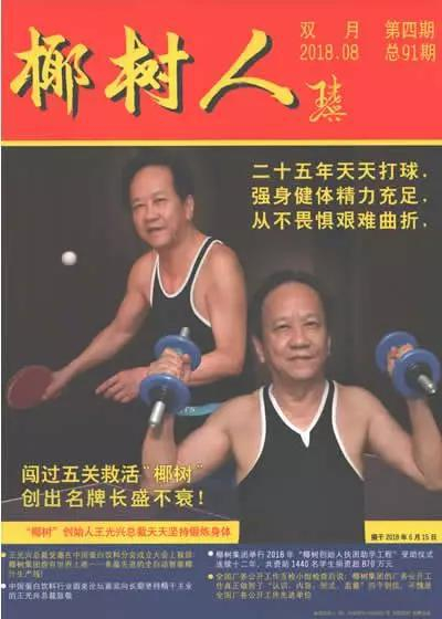 无疑,在早期改革中,王光兴有着不可替代的作用,时至今日,椰树集团内部对老王叔的敬重之情还流露在许多细节里——企业宣传的稿件、公司门口的对联,以及内刊《椰树人》的封面。