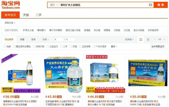 在网购平台搜索椰树牌矿泉水,也不见“胸模瓶”的踪影。