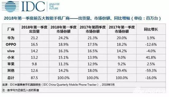 《中外管理》:有数据显示,中国智能手机市场在经过2010-2016年的高速增长后,在2017年增速开始下滑,2018年中国智能手机出货量再次大幅下降,降幅达14%,创下2013年以来的最低水平。但同时,以华为、OPPO、vivo、小米、苹果为首的手机巨头,所占市场份额却从2017年的73%猛增到2018年的88%。