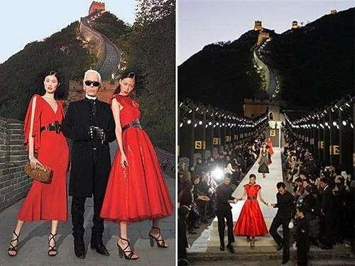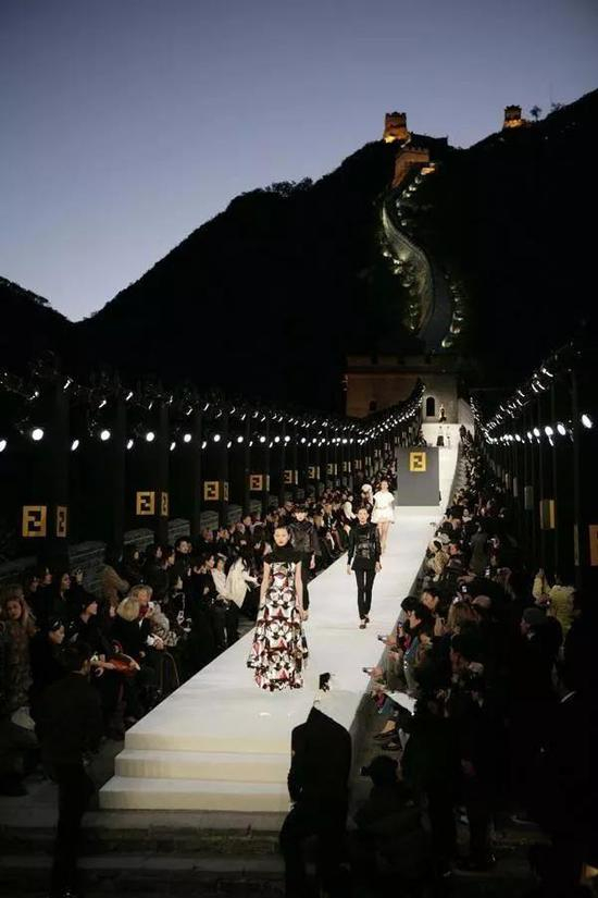 这场长城为背景的时装秀气势恢弘,而且88位模特中有44位中国模特,轰动一时,芬迪也成为第一个在长城办秀的高级品牌,卡尔则成为第一个在长城展示作品的设计师。此后,娱乐节目、模特选秀节目也时不时上长城走秀,致敬一下。