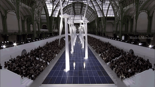 在秀场设计上,涉猎广泛的卡尔独树一帜,赌场、森林、超市,都可以成为T台;关注科技与环保,火箭、冰山、风力发电机,都能搬上舞台。卡尔有多大胆,秀场就有多让人眼前一亮。