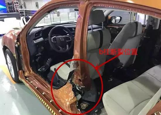 思域的B柱在侧面碰撞中直接断裂……如果上述情况在现实中发生,车内乘客能否保证完整都是一个未知数。