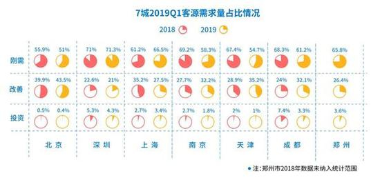 通过贝壳找房数据显示,与2018年一季度相比,目前无论是刚需、改善还是投资,七大城市的需求量普遍在增加,只有北京的投资客在减少。