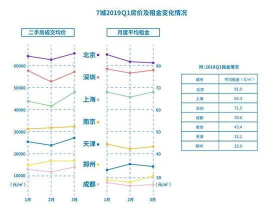 本期《2019Q1城市居住报告》(以下简称《报告》)中,贝壳找房重点观测了北京、上海、深圳、南京、成都、天津、郑州等7大城市的二手房交易及租赁情况。