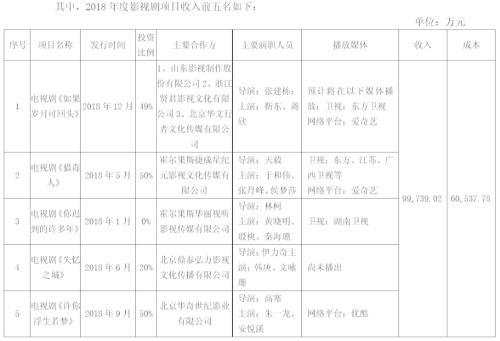 根据财报所披露名单,影视剧收入排在前五名的电影分别为《西游记女儿国》《厉害了,我的国》《欧洲攻略》《长城》《唐人街探案2》,实现收入共计3.4亿元,扣除成本获利近1.6亿元。