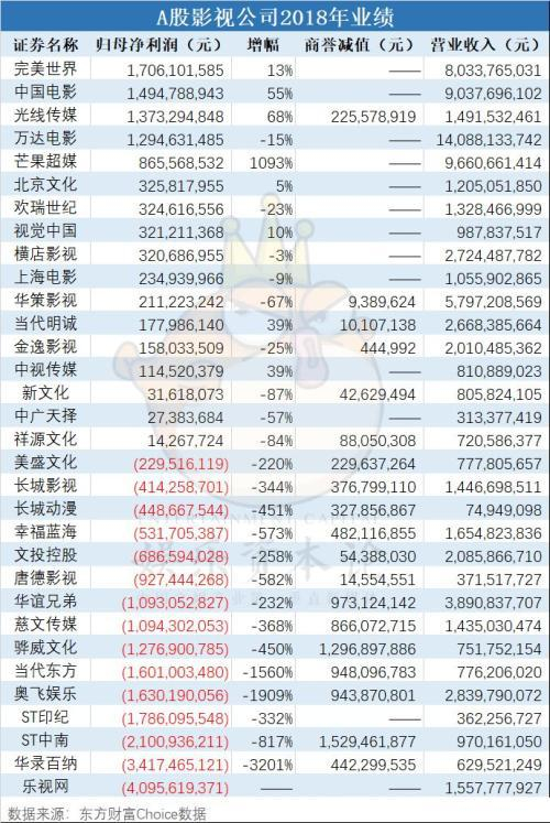 2018影视公司渡劫:芒果崛起 华谊割肉