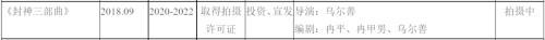 电影多达36部,包括《流浪地球》《美人鱼2》《最好的我们》等。其中《流浪地球》已经在今年3月上映并获得45亿元票房。此前公司发布公告称,预计来源于该影片的收益将高达2.7亿元-2.8亿元。