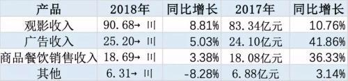 具体来看,公司虽然已经拥有 595 家直营影院,5279 块银幕,当期实现票房 95.6 亿元,但电影票收入、广告收入以及爆米花饮料等餐饮收入增幅较去年相比仍大幅下滑,分别实现收入90.68亿元,25.2亿元以及18.68亿元,从两位数增长降至一位数。在其引以为傲的非票房收入方面,万达还在想方设法增收,年报中透露,咖啡今年也将走进万达影城。