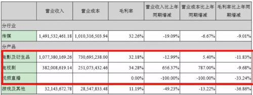 光线传媒:扣非净利润首次亏损,三大主营毛利润齐降