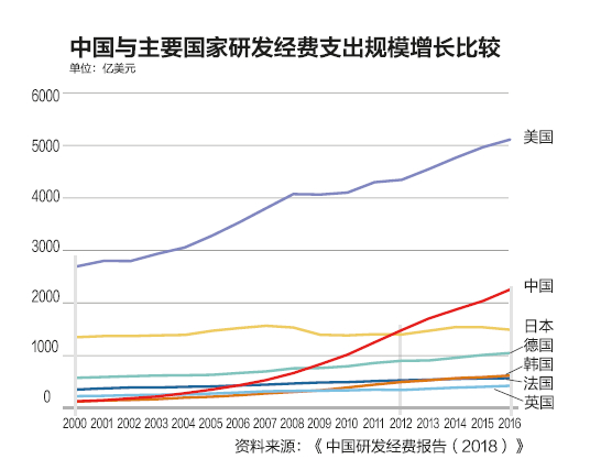 中国科学技术信息研究所政策与战略研究中心主任程如烟曾撰文指出,中国要在2020年实现2.5%的研发强度,有相当大的难度,要追上美国2016年2.74%的研发强度则需要相当长的时间。