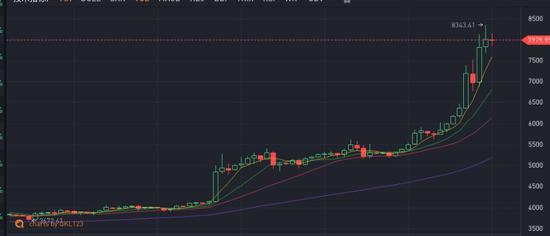 涨幅如此之快,超过了天天呼唤牛市的很多币圈人的预期。DFund合伙人杨林苑说,“从技术面上分析,我们认为6200美元是一个很有难度的点位,因为这个点位附近有很多套牢盘会有巨大抛压,但没想到币价没有回调而是势如破竹涨到了8000美元”。