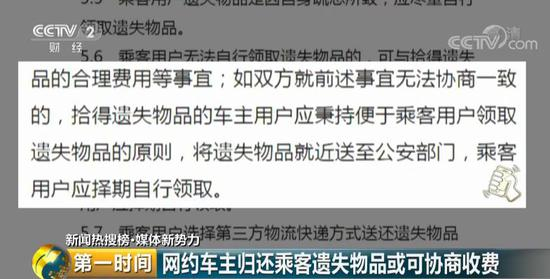 央视财经记者发现《办法》里有关乘客遗失物品时需要承担的义务中写到,在乘客无法自取物品时,可以与司机协商付费,费用可包括保管费、快递费、运输费,以及乘客承诺给的送回奖励等。