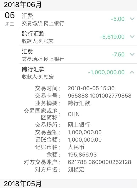 (图一)按照何雨擎母亲提供的账号的打款记录