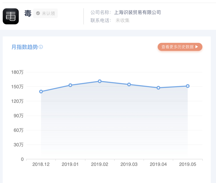2015年正式上线的毒,2018年的月度GMV已达到2亿人民币,更有传闻称2019年上半年某月的GMV已经突破20亿元,预计今年全年的GMV可达60~70亿元。毒作为目前中国球鞋电商中的头部玩家,估值已经超过10亿美元。虎嗅曾几次想联系毒的采访,均遭到婉拒,原因不得而知,最终只从公关那里拿到了零星的信息。