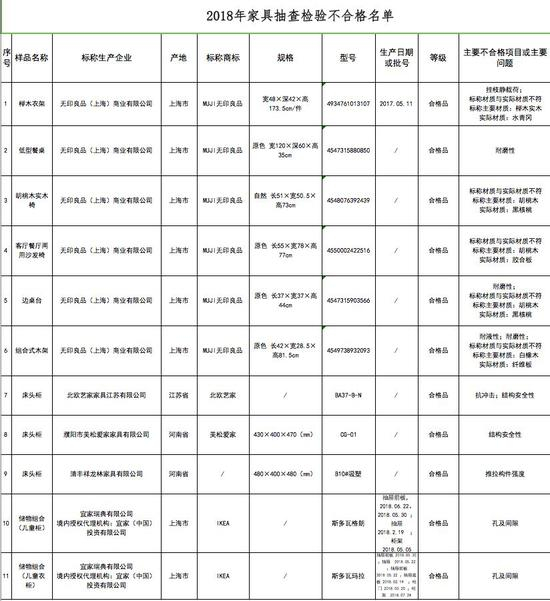 其中经抽检发现的11件不合格家具中,有6件来自“无印良品”,主要问题是标称材质与实际材质不符。