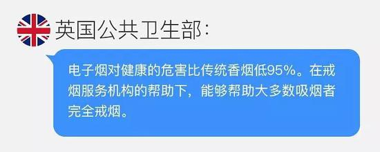 PHE在2015年披露过这样一份报告。这个结论主要基于两个事实:电子烟中的致癌物质要不在电子烟中不存在,要不含量低于5%的香烟含量;电子烟主要的化学物不会造成重大的健康危害。
