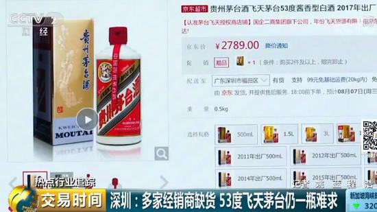 深圳:多家经销商缺货 53度飞天茅台仍一瓶难求