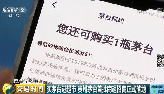 华润万家深圳彩田店总经理 陈鸿:华润万家和贵州茅台集团已经达成了合作,目前是以预约销售的方式进行。