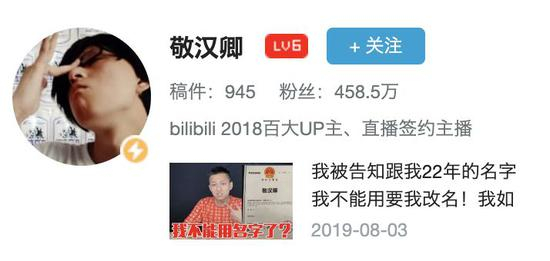 原标题:不改名就侵权?敬汉卿不是第一个被“抢”姓名的网红