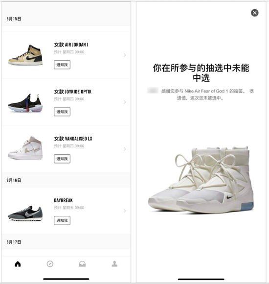 抽签主要是在官方渠道进行,比如线上的Nike官方App Snkrs,Adidas官网、公众号,直营店的小程序、网页、短信等,以及一些潮流店的线上渠道。