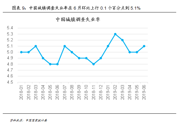 中国的政策制定者当前面临的一大压力来自于经济增长下行带来的就业市场疲弱,中国自2018年初开始公布更具观察意义的城镇调查失业率数据,这一数据自2018年三季度开始走高,2019年6月环比5月上行0.1个百分点到5.1%。国家统计局新闻发言人称,7~8月大学生毕业季即将到来,就业压力仍在增加,而推进结构转型和传统老经济产业去产能的过程中,也会带来结构性压力。因此对于中国的政策制定者而言,推行文化创意产业的发展,能够吸引一批优秀的年轻人进入这一行业,从而缓解传统制造业等行业下行对劳动力市场的冲击。