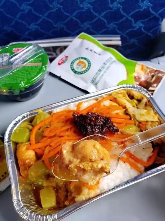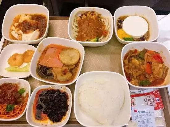 川航的飞机餐,堪称天空上的川菜馆!每一道菜都充满了最正宗的味道,担担面、冒菜、麻椒鸡,等等等等,还有专属于你一人份的老干妈,就连米饭都做成了爱你的样子。