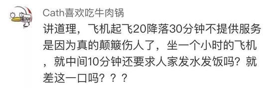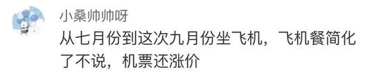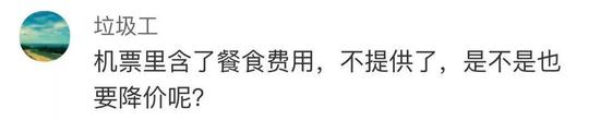 还有网友提出质疑说,“机票价格已经包括了餐食,既然缩减了餐食,为何机票价格不随之进行调整?”
