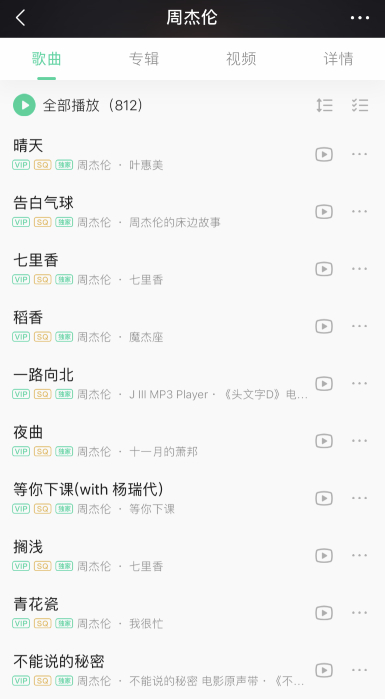 拿不少歌迷关注的音乐版权来说,在拥有周杰伦歌曲版权的QQ音乐、酷狗音乐等APP上,周杰伦的歌曲都被加上了VIP标识,非付费用户只能试听60秒,要完整收听或下载,要充值、开通绿钻会员,而这些不仅会为平台带来营收,同时也更是周杰伦本身财富增值的重要部分。