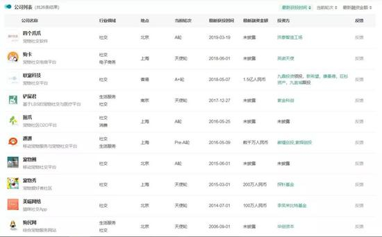 另外,公开资料显示,在融资进程上,多数专注宠物社交的平台都止步于A轮,甚至拿到天使轮后就偃旗息鼓。