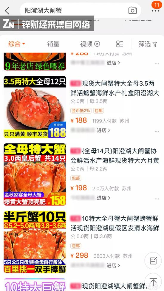 某电商平台上搜索出的阳澄湖大闸蟹