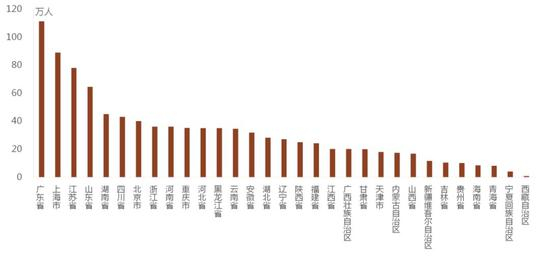 其中,广东省、上海市、江苏省和山东省从业人员位居前四,均超过50万人,分别为111.3万、89.0万、78.0万和64.4万。湖南省、四川省、北京市、浙江省、河南省、重庆市、河北省、黑龙江省、云南省、安徽省从业人员均超过30万人。