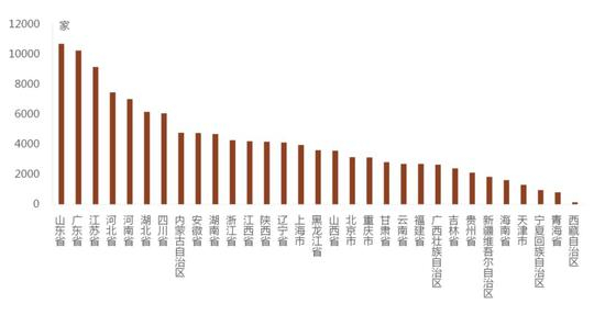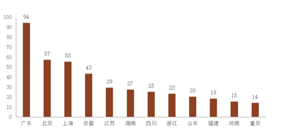 数量:广东、北京、上海、安徽名列前茅