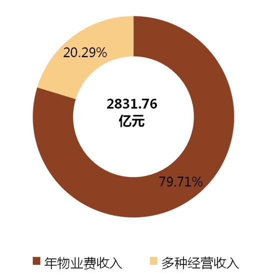 500强企业物业费收入2257.33亿元,占总营收的79.71%,为企业创收的主力。