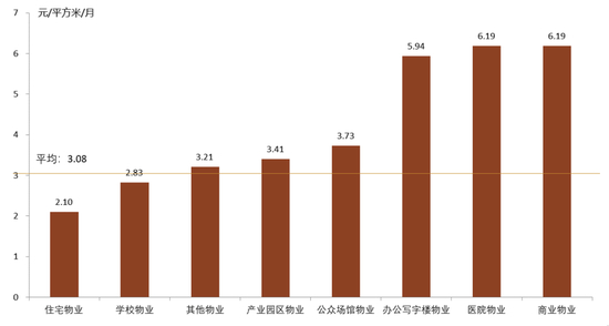 此外,公众场馆物业、产业园区物业、学校物业、其他物业物业费水平分别为3.73元/㎡·月、3.41元/㎡·月、2.83元/㎡·月和3.21元/㎡·月。