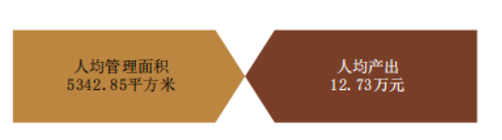 2018年,500强企业人均管理面积和人均产出分别为5342.85平方米和12.73万元,企业人均管理面积和和人均产出逐步走高。