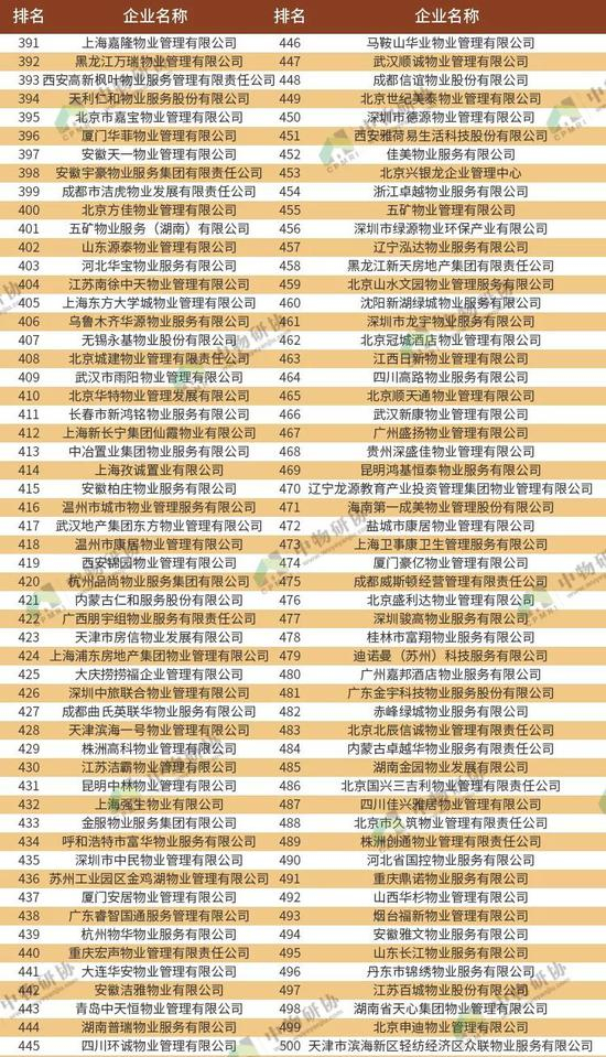 本次研究甄选出在经营情况、管理规模、服务质量等多方面表现突出的500家物业服务企业。