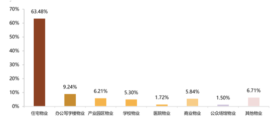 此外,学校物业、医院物业、公众场馆物业和其他物业,管理面积分别占比5.30%、1.72%、1.50%和6.71%。