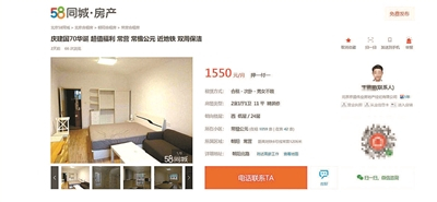 日前,北京市住建委等5部门为规范住房租赁市场的秩序,维护租赁当事人的合法权益,正式出台《关于规范互联网发布本市住房租赁信息的通知》。该通知指出,在互联网交易平台上所发布的关于北京市的住房租赁信息例如房屋的照片、房屋各方面状况的描述必须要与实际情况相符。此外,在这些平台上要在展示房源信息的页面同步展示该企业营业执照信息、备案信息和从业人员信息卡标识。记者调查发现,58同城在该通知下达后依然存在发布“虚假”信息的现象。