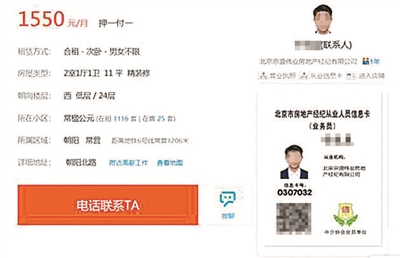 对此,58同城相关负责人表示,根据北京市住建委相关管理规定,从业人员通过互联网平台发布住房租赁信息,信息发布人员需持有从业人员信息卡。58同城严格遵循相关管理部门对经纪人在平台发布信息的规定和要求,在经纪人信息页面清晰展示其从业人员信息卡,并接受公众监督。并表示,在58同城上发布房源信息页面联系电话是由经纪公司统一预留电话,由经纪公司统一上报,接听电话者是经纪公司相关人员,具体以经纪公司安排为准。