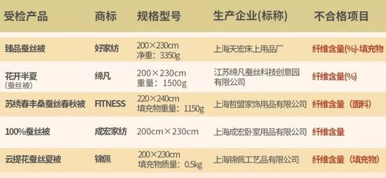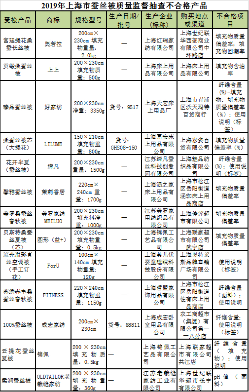 近期,上海市市场监管局对80批次生产、销售的蚕丝被产品进行了监督抽查。几乎涵盖了上海市在售蚕丝被的主流品牌,经检验,不合格13批次。