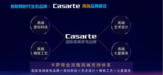 Casarte(卡萨帝),我们定位是国际高端家电品牌。首先它品牌的路径是初心、匠心和慧心。初心就是我们为完美不妥协的这样一种初心,匠心就是卡萨帝的标签:科技、精致和艺术,慧心的意义就是爱。
