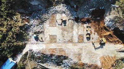 12月5日,航拍发生爆炸的浏阳市碧溪烟花制造有限公司石下工区。新京报记者 邵骁歆 摄