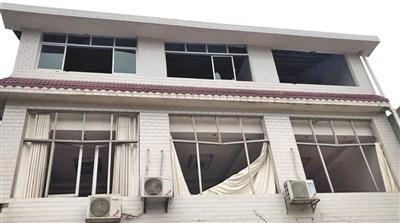 山下,许多村民家中窗户玻璃被震碎。村民吴秀春说,她后来回家看到,满屋子散落着玻璃碴。家中不少窗框已变形,墙体出现轻微裂痕。吴秀春介绍,政府工作人员第二天拉来了瓦片,并对房屋结构进行检查。