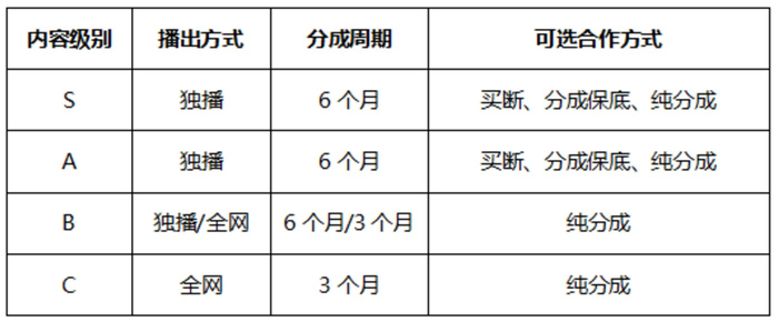 相比较爱奇艺,腾讯的约于2017年推出的一套合作方式,更直接,或者说偏向保守。